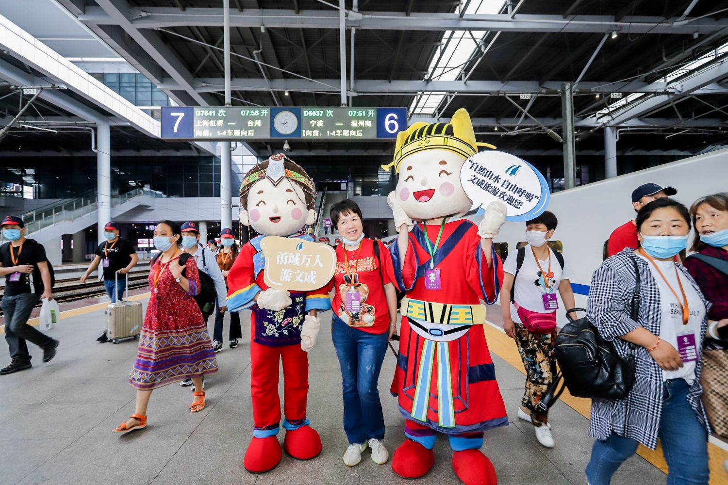 在疫情防控形势持续向好的情况下,这是抵达温州的首趟高铁旅游专列,拉开了自“诗画山水·温润之州”2020全国百家旅行商温州旅游采购大会后,省内各地市组团来温游的序幕。