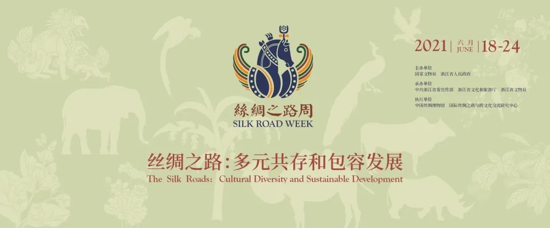 为进一步弘扬和践行习近平总书记在北京“一带一路”国际合作峰会上提出的“和平合作、开放包容、互学互鉴、互利共赢”的丝绸之路精神,同时纪念“丝绸之路:长安—天山廊道的路网”跨国申遗成功七周年,由国家文物局、浙江省人民政府主办,中共浙江省委宣传部、浙江省文化和旅游厅、浙江省文物局承办,中国丝绸博物馆、国际丝绸之路与跨文化交流研究中心执行承办的“2021丝绸之路周”活动将于6月18日-24日举行。活动由国际丝路之绸研究联盟、丝绸之路文物科技联盟、中国博物馆协会丝绸之路沿线博物馆专业委员会、国际丝绸联盟、中国蚕桑丝织技艺保护联盟、国际古迹遗址理事会西安国际保护中心、浙江万里学院(宁波海上丝绸之路研究院)、陕西历史博物馆、甘肃省博物馆、福建博物院协办。