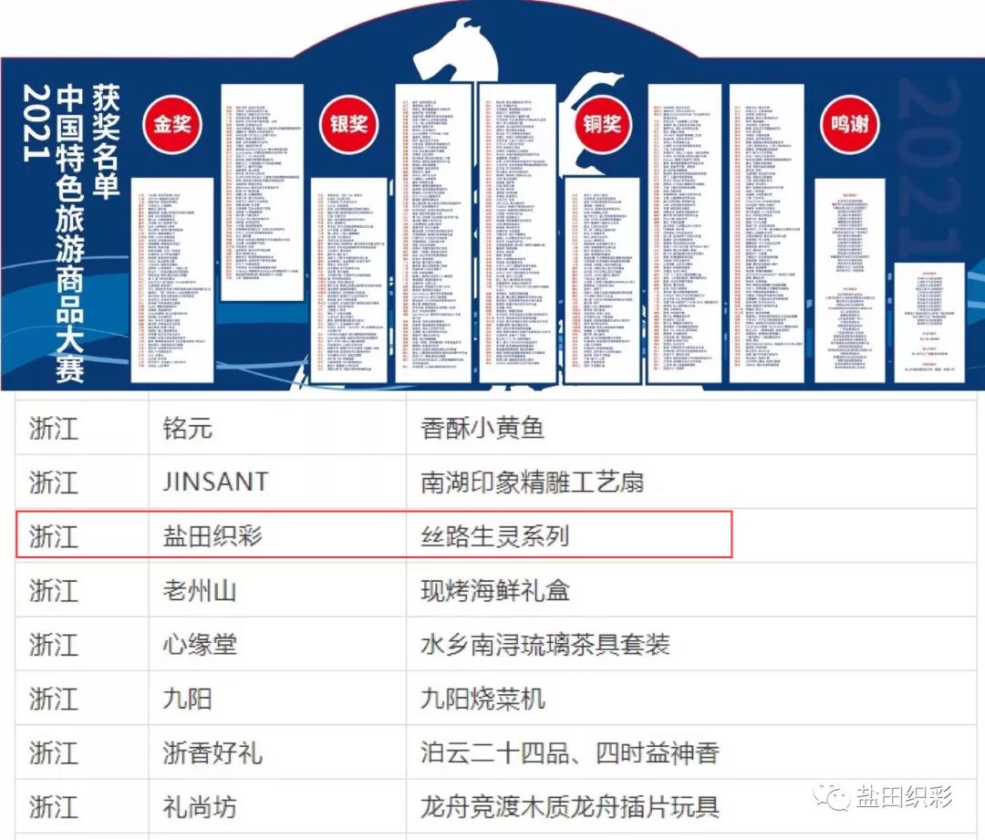 日前,在“2021中国特色旅游商品大赛”中,中国丝绸博物馆与盐田织彩联合出品“丝路生灵系列”荣获铜奖!