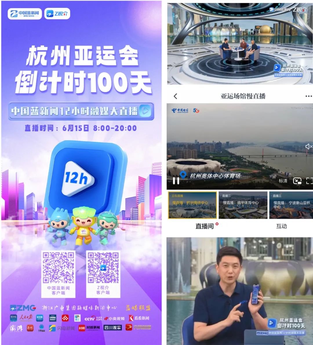 ZMG携手“全国热点新闻直播联盟”及“蓝媒联盟”融合传播协作体,通过融媒大直播、新媒体产品、线上线下活动、中国蓝名嘴评论等,持续打造高质量迎亚运精品内容。同时,拓宽传播渠道,加强精准分发,提升亚运报道影响力。