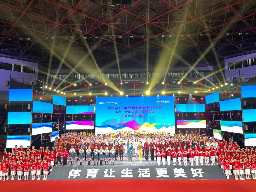 6月15日,温州市人民政府主办的第十九届杭州亚运会倒计时100天温州“运动之夜”庆祝活动——等你来 享精彩,今晚19:30分“温度新闻”“温州人”客户端进行了联动直播,温州各行各业群体共同完成了一台温州人民“全力冲刺迎接亚运”的精彩晚会,传递温州作为亚运会协办城市之一,温州人民喜迎亚运的热情和对亚运盛会的期盼,以及为杭州亚运会做好充分准备的信心。